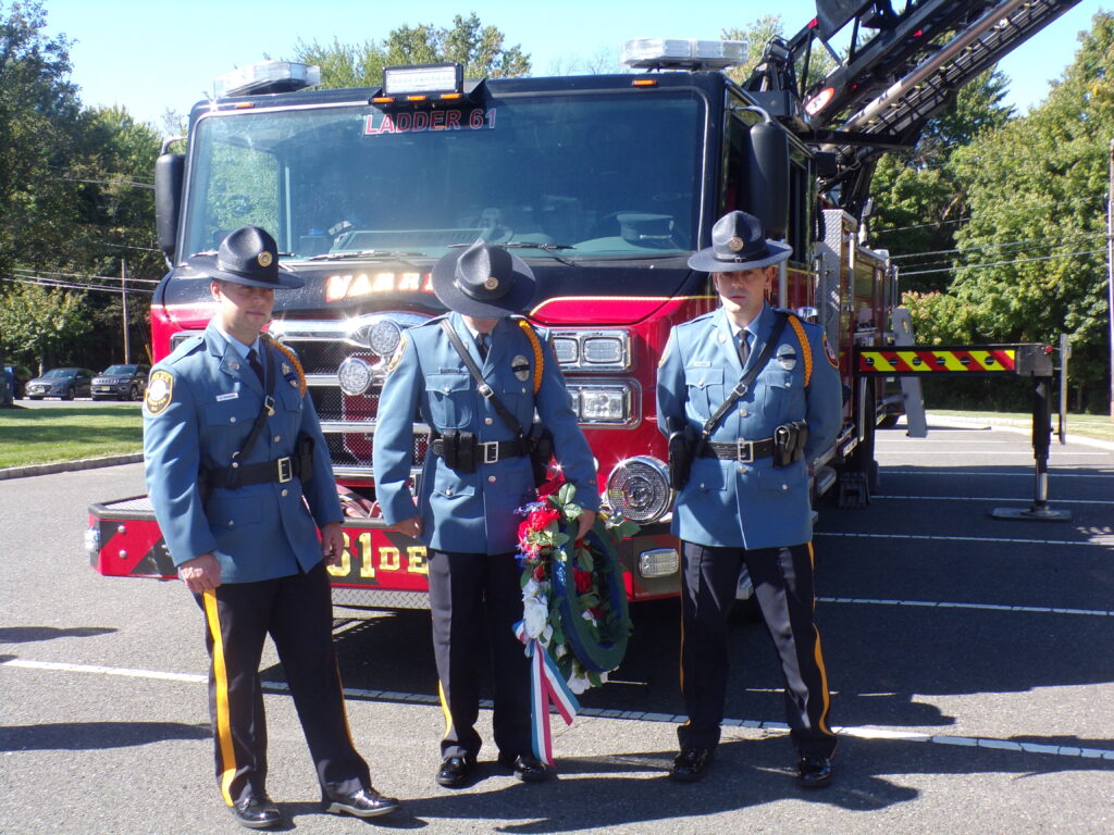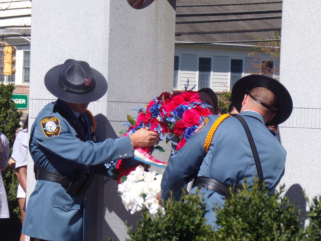 The Warren Township Police Department Color Guard laid a wreath in front of the town's 9/11 Memorial and the mayor asked for a moment of silence in honor of the nearly 3,000 Americans who lost their lives on Sept. 11, 2001.