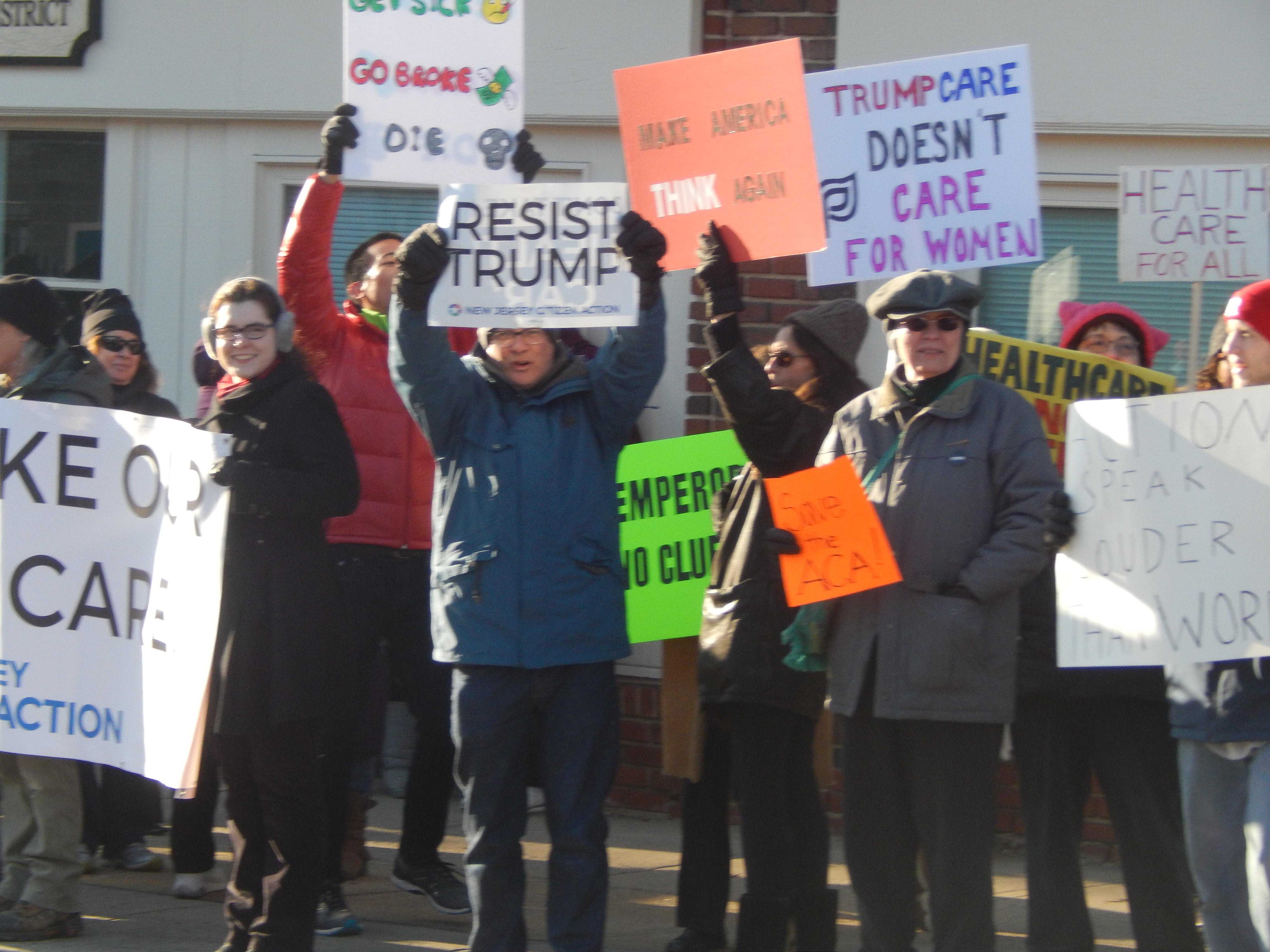Activists Exult Outside Lance's Westfield Office Ahead of Affordable Healthcare Vote in Congress