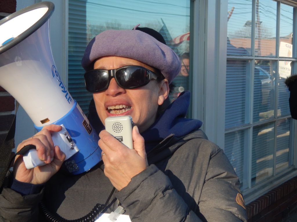 Beverly Brown Ruggia (pictured), community reinvestment organizer for New Jew Jersey Citizen Action was on the bullhorn.
