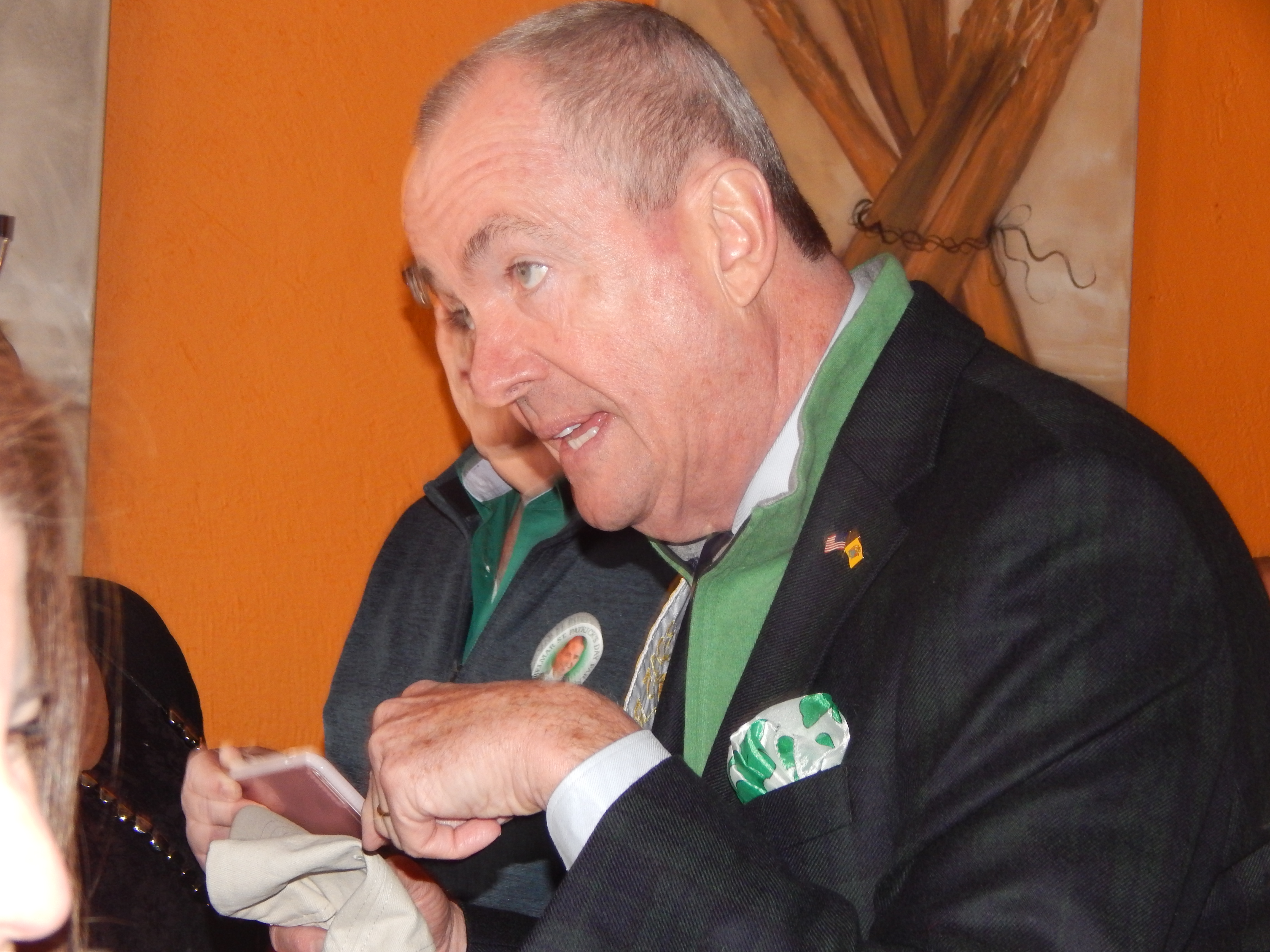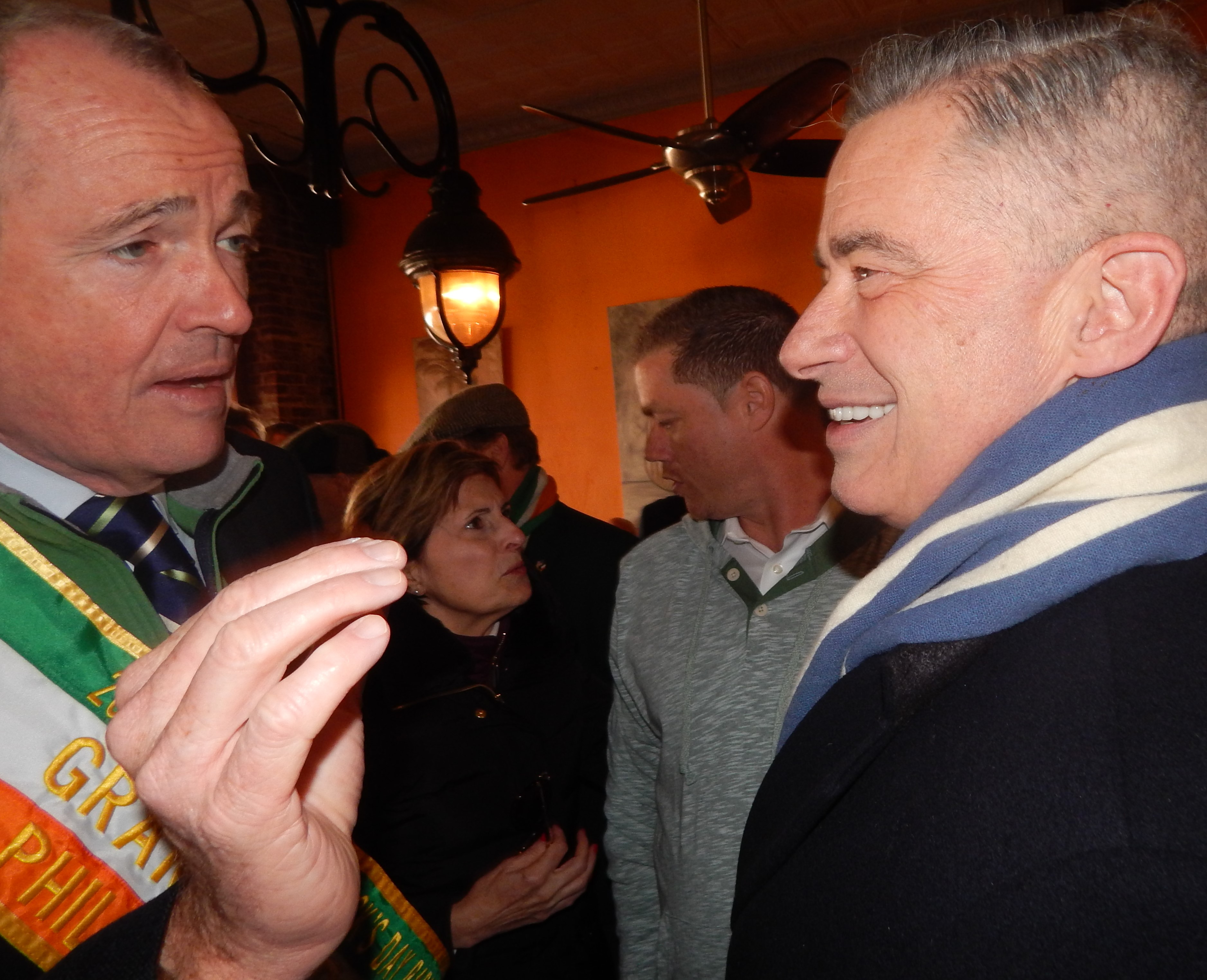 "I'm originally from Boston," said Phil Murphy, the Democratic front-runner for governor, be-draped in a marshal's parade sash and with a crowd of Irish caps around him in a crammed Brandl. "Up there we celebrate St. Patrick's Day on one day, one event. Here in New Jersey you have 78 events spread out over the whole month."