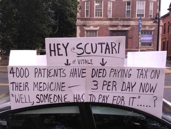 "4000 PATIENTS HAVE DIED PAYING TAX ON THEIR MEDICINE - 3 PER DAY NOW" Mr Miller's note said, calling out Senator Nick Scutari who sired the very worst medical marijuana program in the nation.
