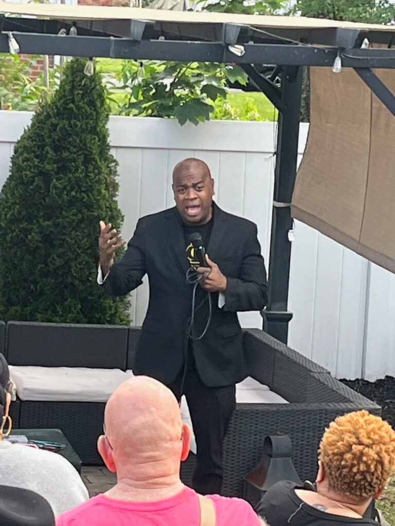 Baraka spoke to almost 100 people in the backyard of the home of City Councilwoman Julienne Cherry.
