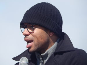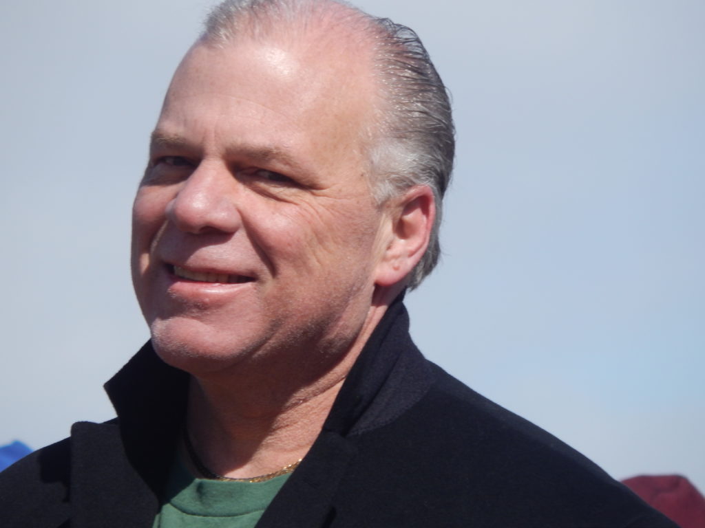 Building Trades President Bill Mullen, Burzichelli and Norcross visibly suffered the cold under layers of cold weather gear in frigid conditions at Sweeney's kickoff, while the senate president wore a terry cloth long coat over a union T-shirt. As Norcross tottered in misery, Sweeney threw open his coat to show his resistance to the cold, and noted the preparation irowworkers have to stare down all weather, unlike trained electricians like Norcross, he cracked.