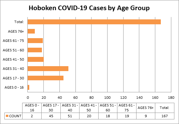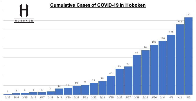 We reported another 14 positive COVID-19 cases from the Hoboken Health Department today, with 167 total in Hoboken. As always, the Hoboken Health Department conducts an investigation to ensure all those in contact with those individuals self-quarantine. Thankfully, of the 167 that tested positive, 32 have fully recovered.