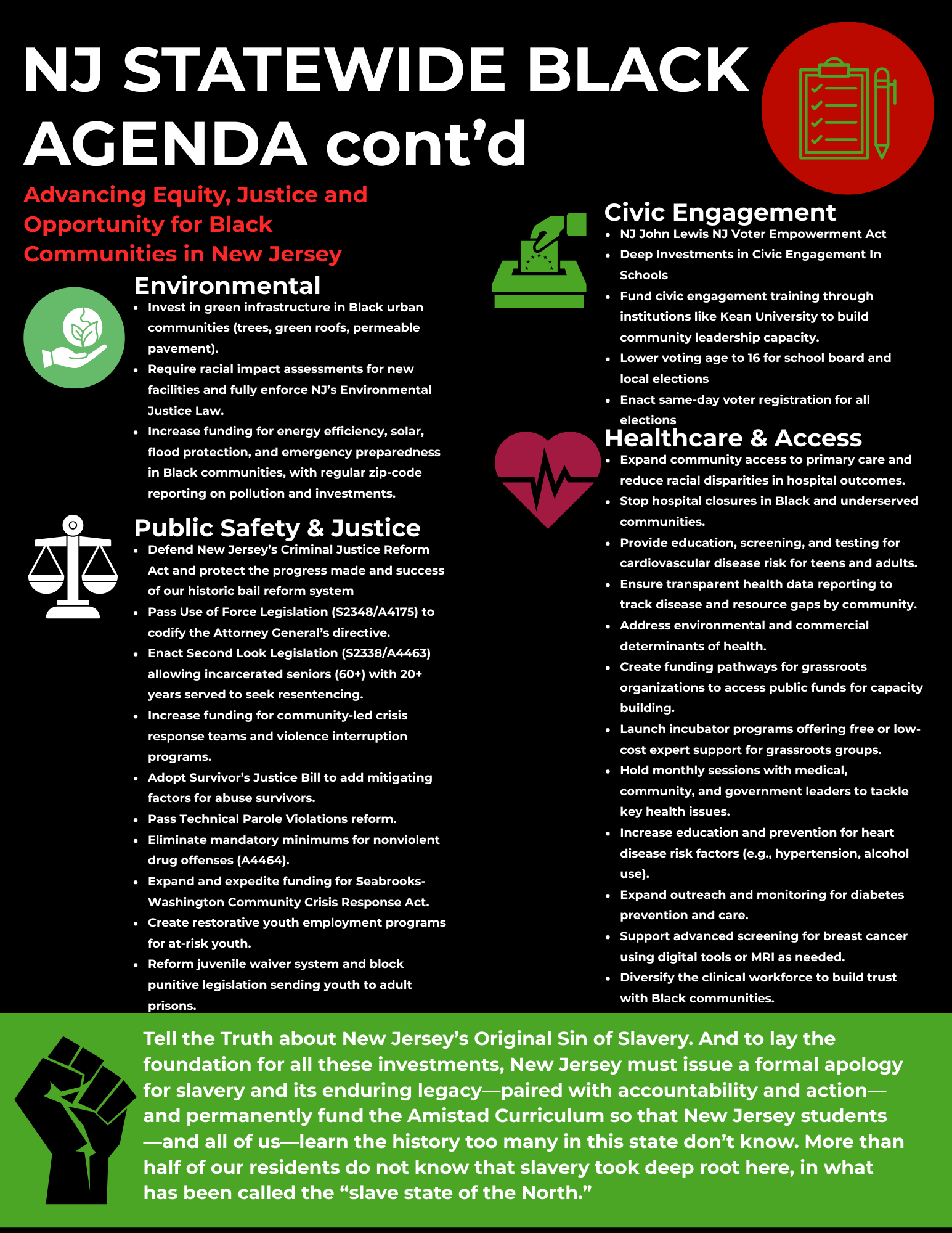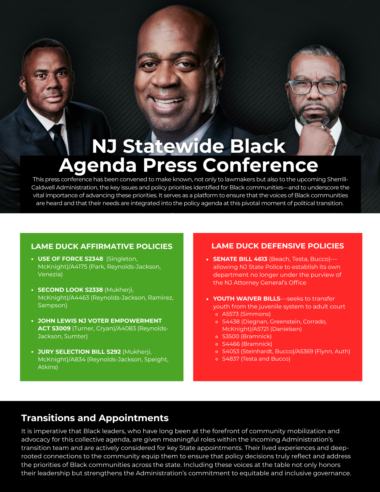 Black leaders this afternoon convened a Black Agenda Press Conference in Atlantic City to punctuate their community's expectations for the lame duck session and for the incoming Sherrill Administration.