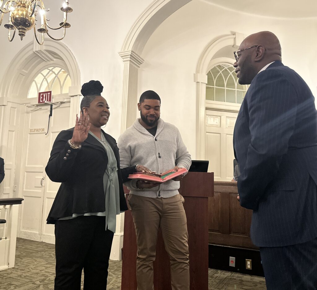 Held Tuesday evening in the Historic Olde Courthouse in Mount Holly, the meeting featured the swearing-in of Hopson, who is beginning her third term on the board, and Burrell, who at age 28 is believed to be among the youngest residents to serve as a County Commissioner since modern record keeping began.