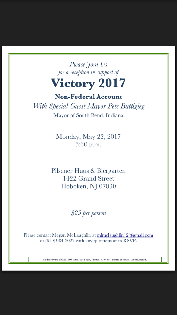 South Bend, Indiana Mayor Peter Buttigieg will head up an LGBT event for Democratic Victory 2017 on 5/22 at 5:30 p.m. in Hoboken at the Pilsner Haus.
