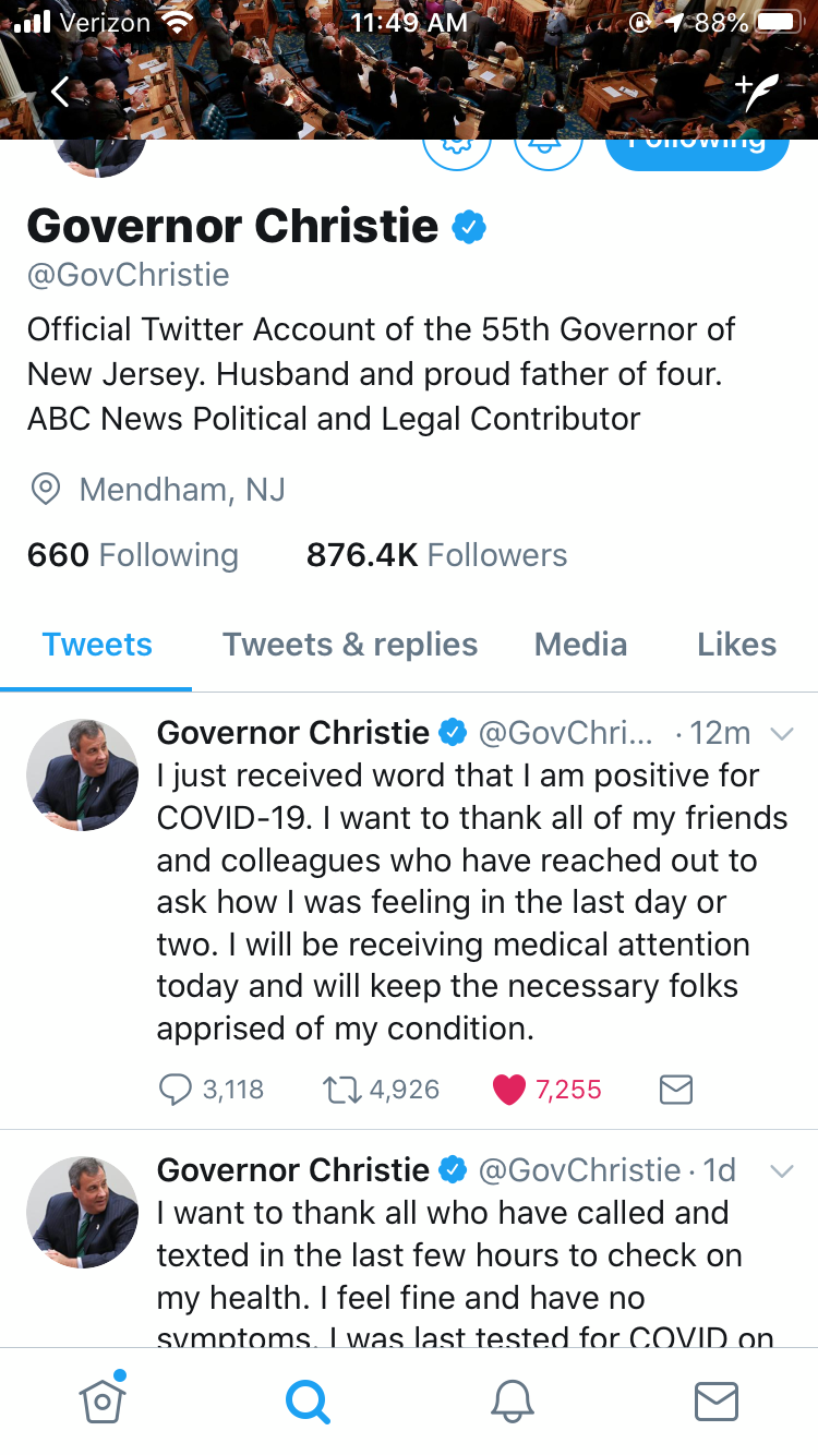 Christie Tests Positive For COVID-19