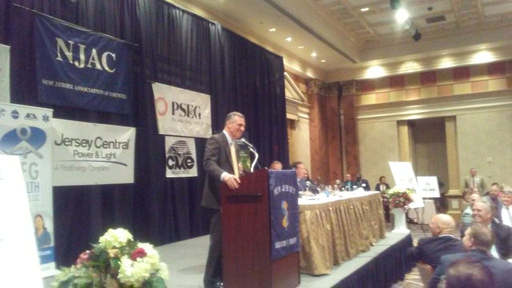Passaic County Freeholders Bruce James and T.J. Best were in the room. Hudson County Freeholder Junior Maldonado was in the room, and so was Hunterdon County Freeholder John King, who bagged an association plaque as freeholder of the year. Morris County Freeholder Deborah Schmidt was in the room. Down front, Somerset County freeholders Peter Palmer and Brian Levine sat attentively.