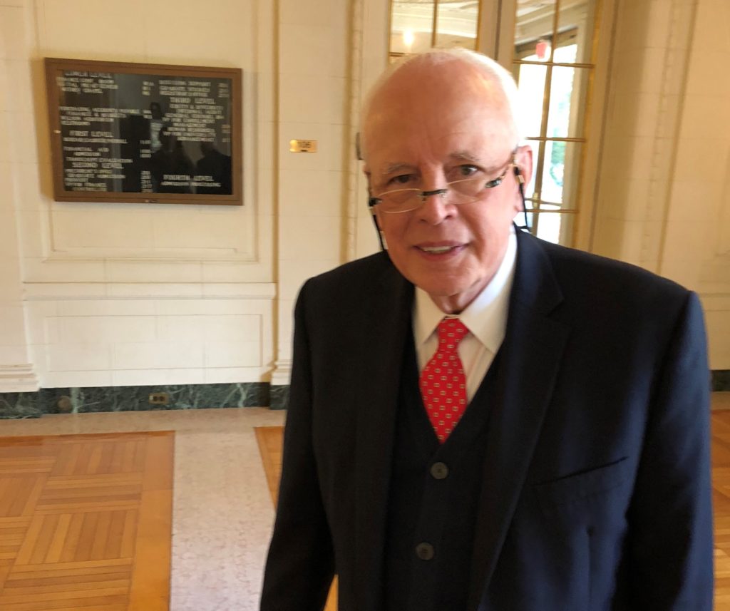 The setting for this brief conversation was appropriate - outside a room in the university's Wilson Auditorium where Democrats were holding a rally to benefit Bob Menendez, who is in a tough reelection battle with Republican Bob Hugin.