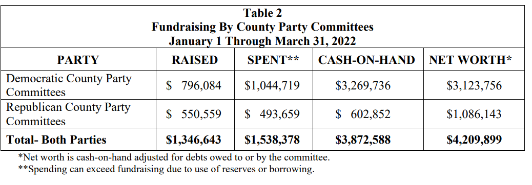 An ELEC analysis released February 3, 2022 found that Democratic committees raised 41 percent of their funds last year from out-of-state groups compared to just seven percent for GOP committees.