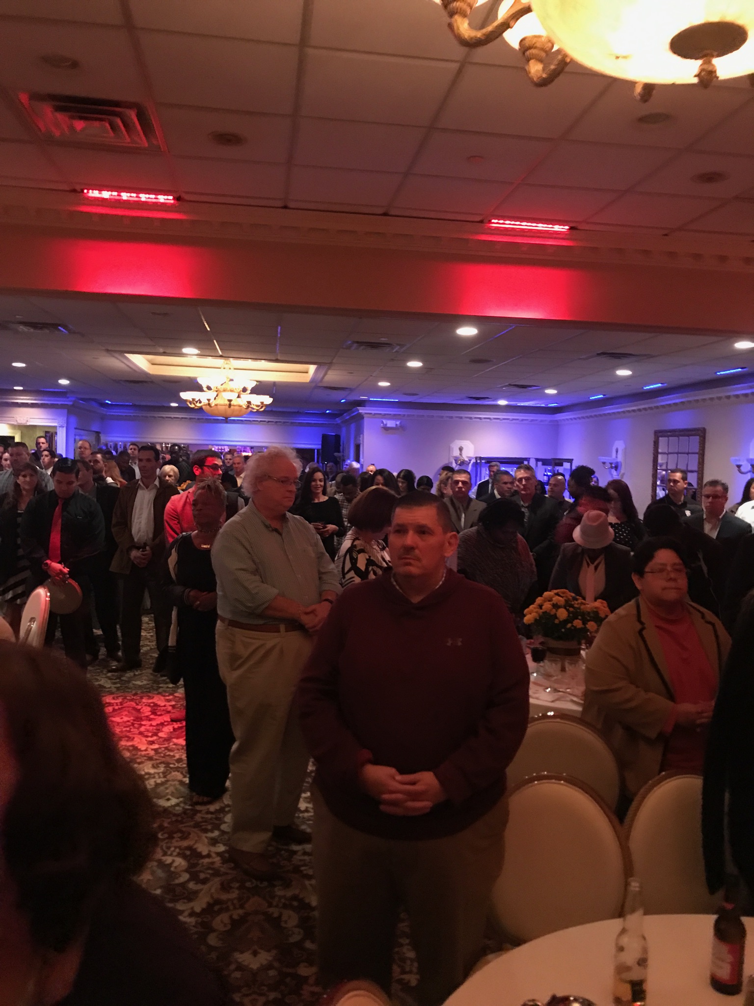 The crowd listened with rapt attention while the mayor spoke, There was not the usual bar chatter as he went into the litany of reasons why they should reelect him. Afterwards, people clawed to get closer.