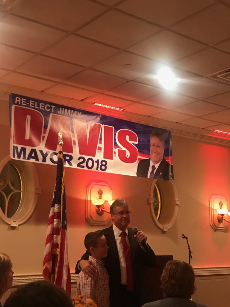 in a place but to name an entire joint "The Chandelier" - on condition it be located in Hudson, and so arose a Bayonne establishment that tonight proudly played host to Mayor Jimmy Davis, who kicked off his 2018 reelection bid surrounded by Hudson County Democratic Organization (HCDO) bigwig allies and the humble maritime machinery of local humanity.