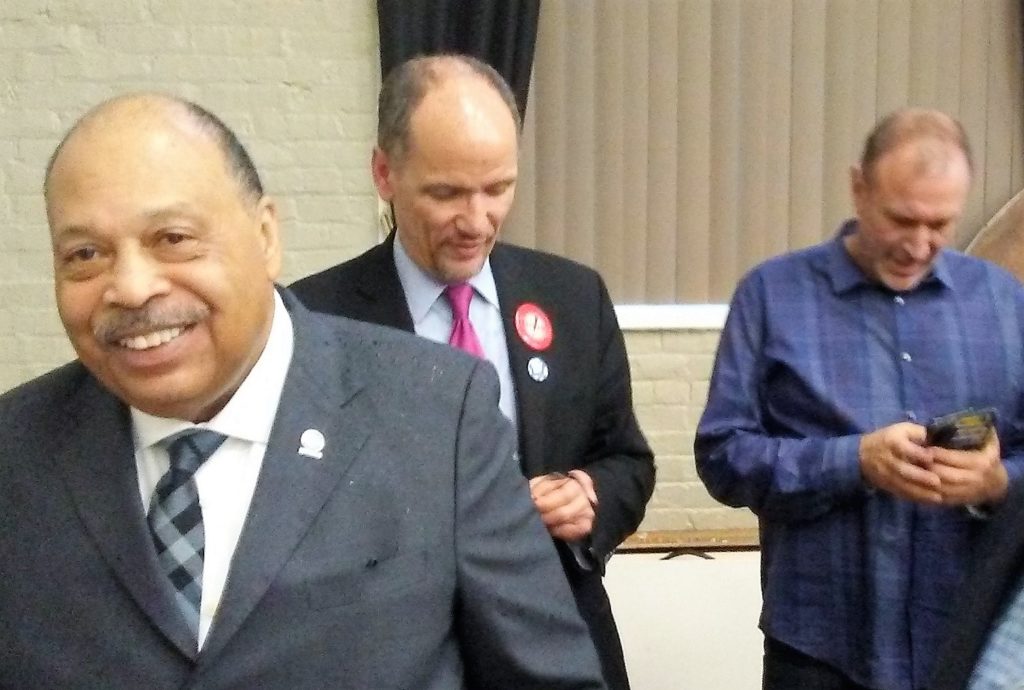 After appearing in Newark earlier today with Mayor Ras Baraka, Perez and Ellison swung through here with the