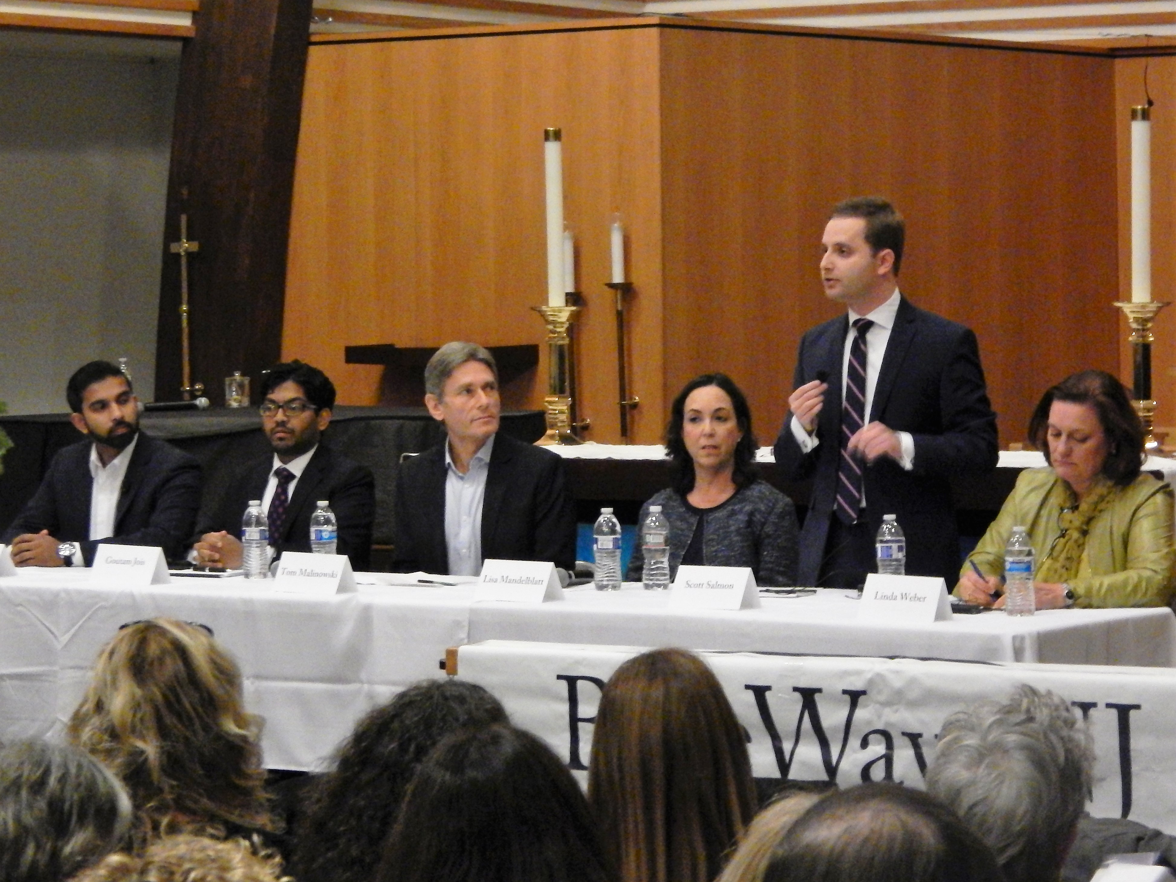 8. There's definitely some progressive passion at work in the district. Six candidates stood at the front of the room in a front of a packed St. Mark's Church. Progressives? In church? Under the soaring organ pipes behind the altar, Blue Wave maestro Marcia Marley looked like she was in Blue Wave heaven. Familiar faces dotted the crowd. Bullhorn cowboy Joey Novick wore a bemused grin foretelling GOP doom, his money down on fellow attorney Goutam Jois of Summit (Joey's the campaign manager, in fact). Barry Brendel - he of the Bernie Sanders rebellion (and the Gary Hart debacle in 1984) - held court in the crowd, horn-rimmed millennial elves gathered round him in hopes of parceled political stocking stuffers. Former Edison Mayor Jun Choi - one of the early backers of Barack Obama in New Jersey - prowled the floorboards. There was some energy among these people who think they can take down incumbent U.S. Rep. Leonard Lance (R-7).