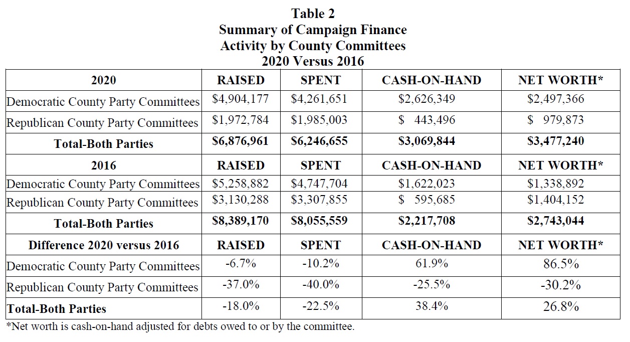 County political party committees in 2020 reported their second smallest fund-raising haul in a