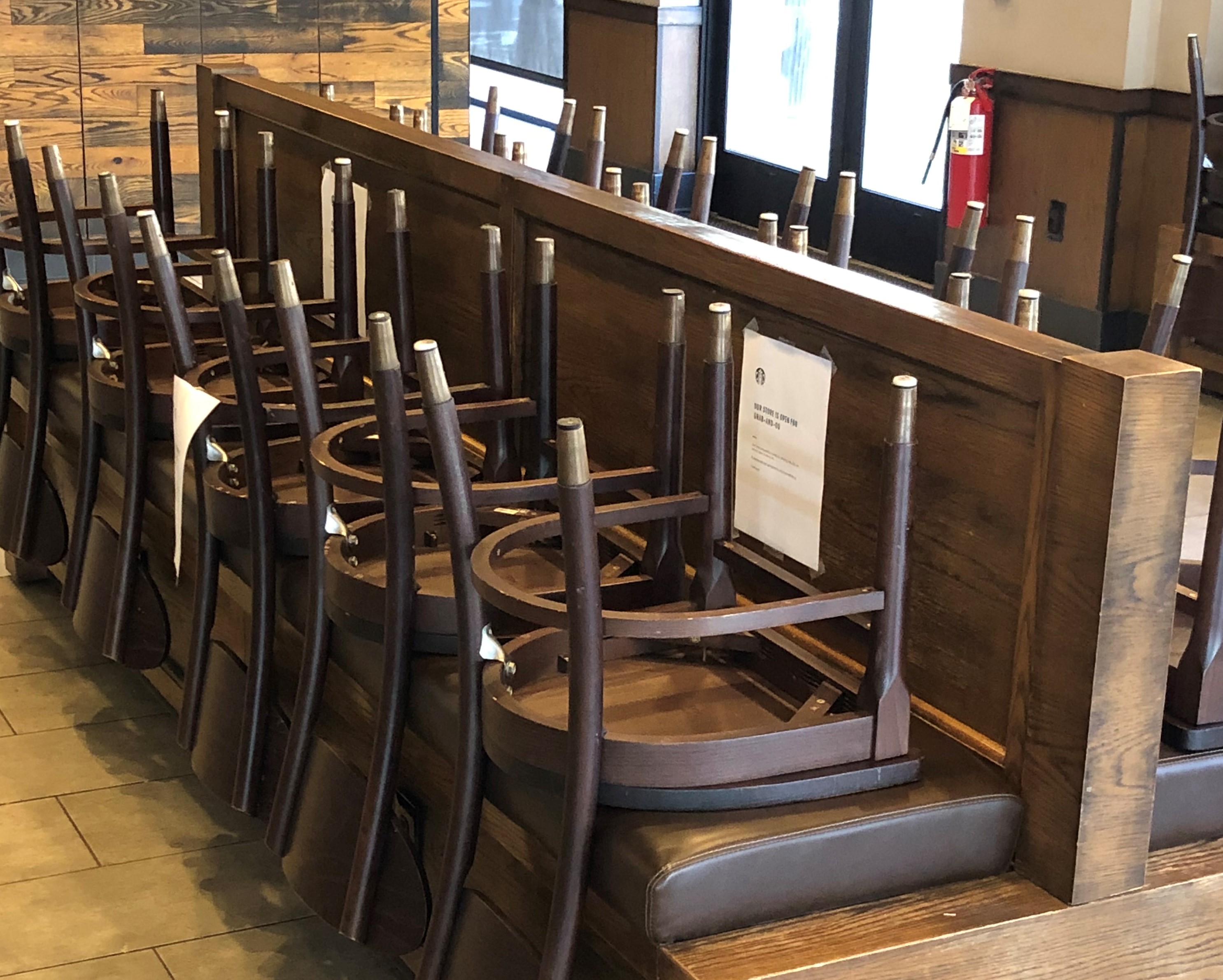 Starbucks was open, but the chairs were atop tables and the new policy was simple - buy something and depart. Guess it really is a catastrophe if one can't dawdle in a Starbucks with a cup of coffee.