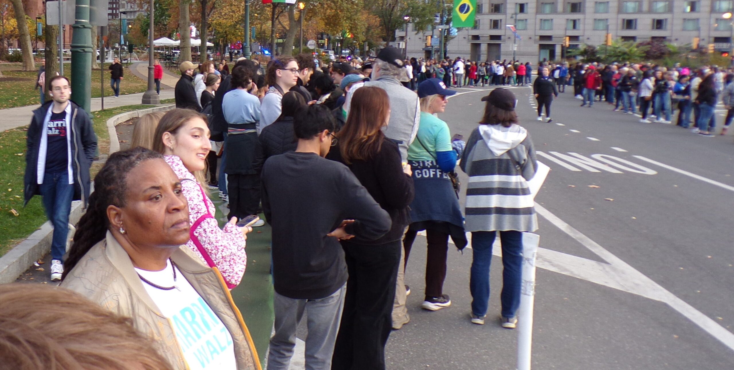 These people waited excitedly to see and hear Harris later this evening on the eve of Election Day, 2024.