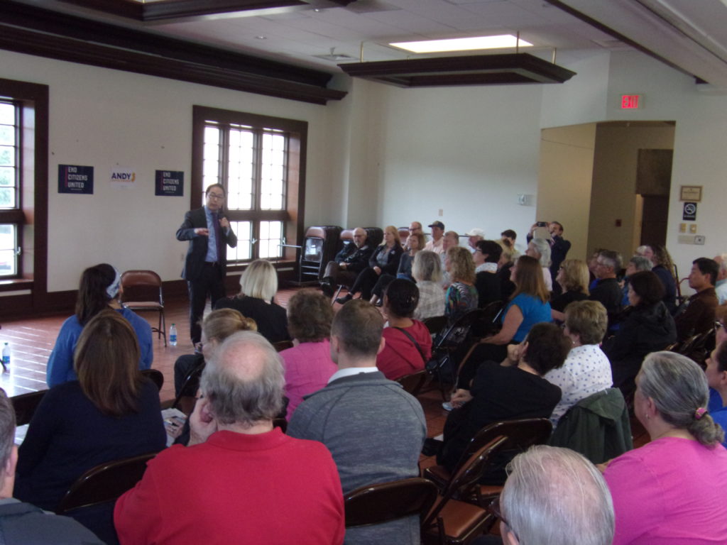 MARLTON- With 43 days until Election Day, CD3 challenger Andy Kim held a town hall today at Gibson House, directly beneath the offices of his rival, where he renewed his pledge to expunge what he called "big money" from American politics.
