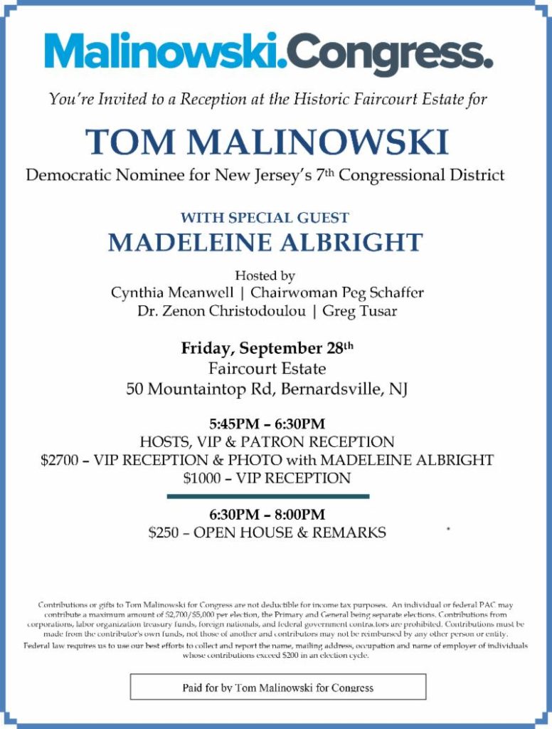 Former Secretary of State Albright Coming in for Malinowski in Battleground CD7