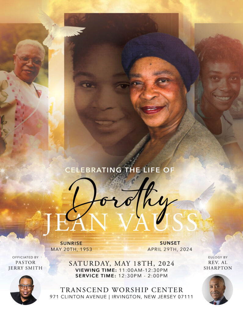 The Honorable Mayor Tony Vauss of Irvington, New Jersey, together with his brother Christopher Bembry and Family, sorrowfully announce the Funeral Arrangements for their beloved Mother, Dorothy Jean Vauss. Amidst these challenging days, the outpouring of support and comforting messages has been deeply appreciated by the family.