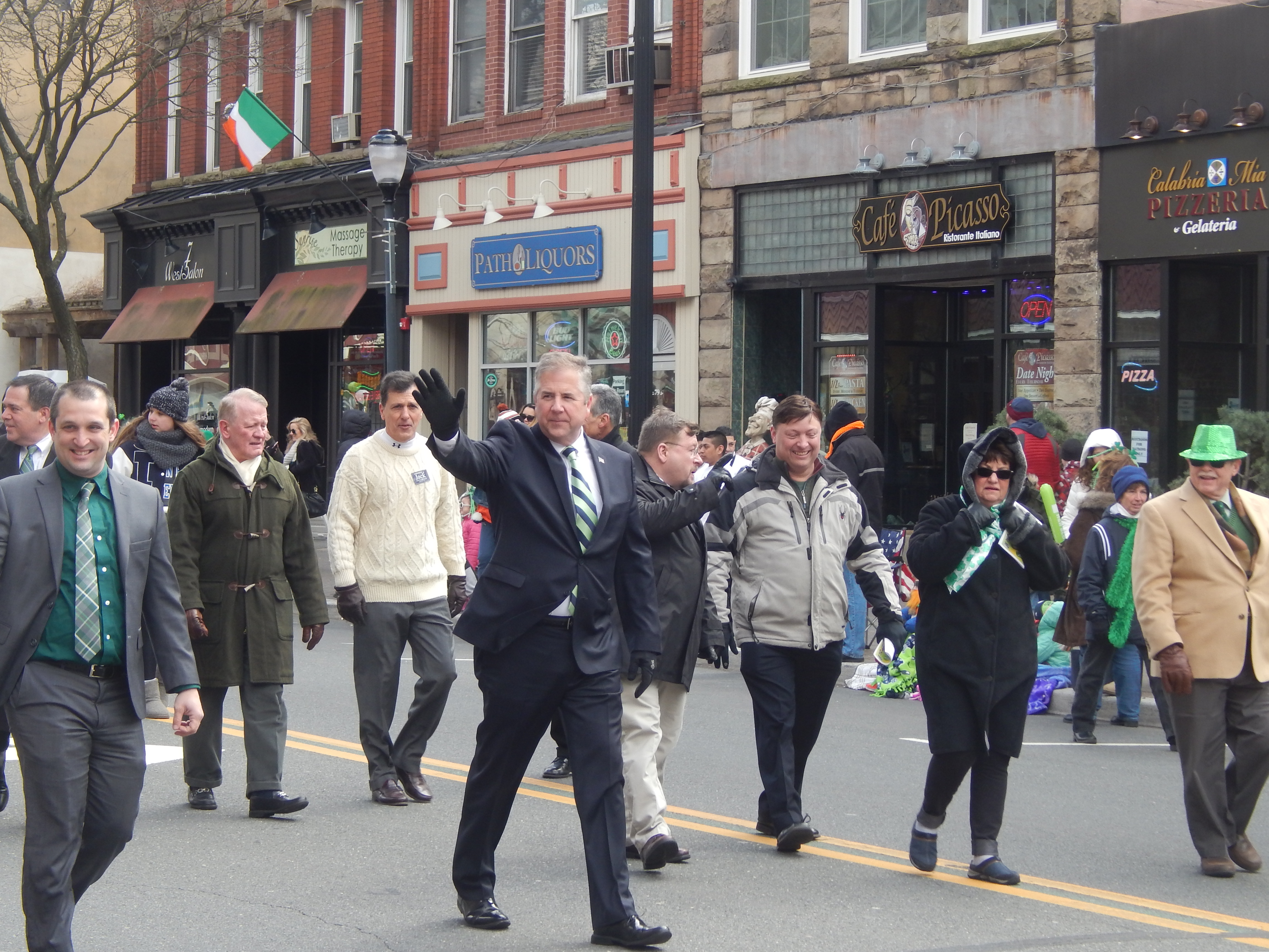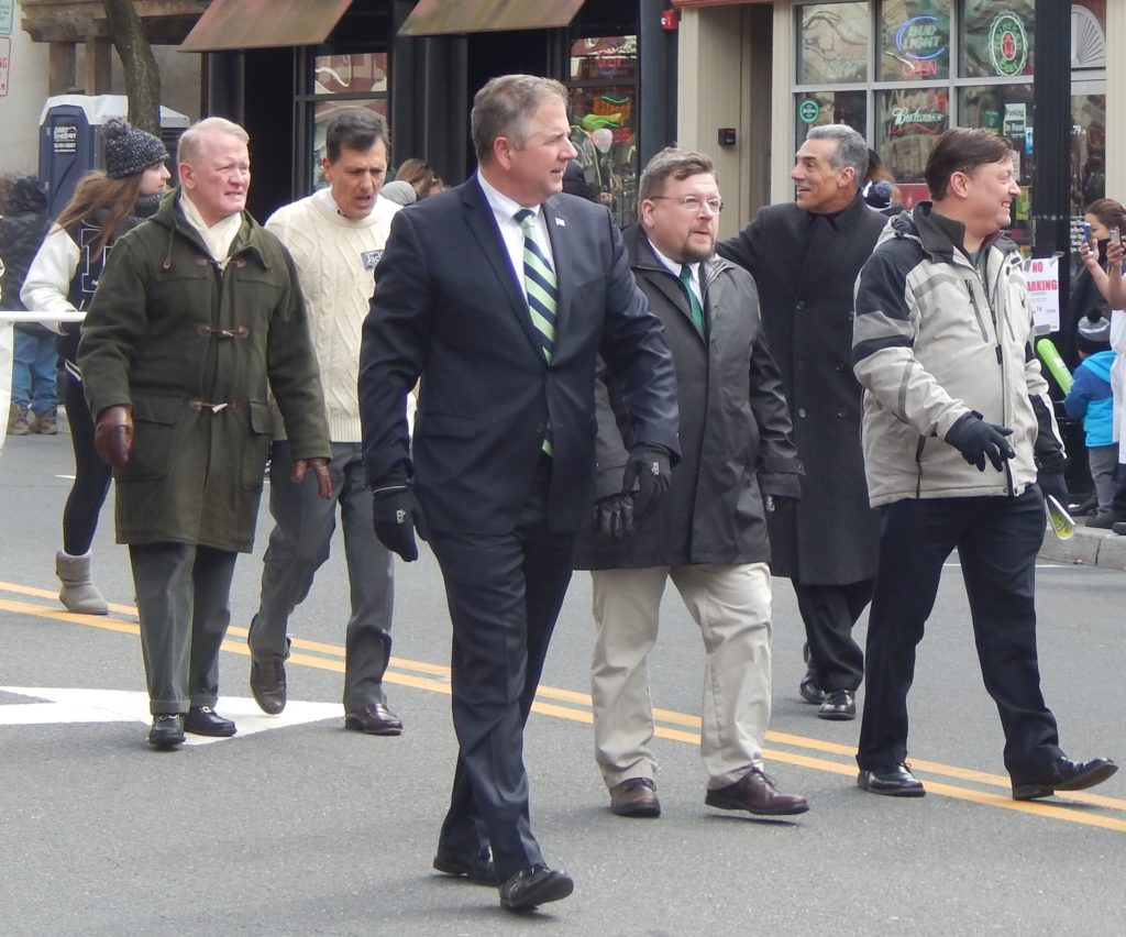 U.S. Rep. Leonard Lance (R-7), Somerset Clerk Brett Radi, Assemblyman Jack Ciattarelli (a candidate for governor), and Freeholder Mark Caliguire all walked with Gallagher at a very well attended parade where many of the onlookers ended up packed into Mannion's on the west side of town.