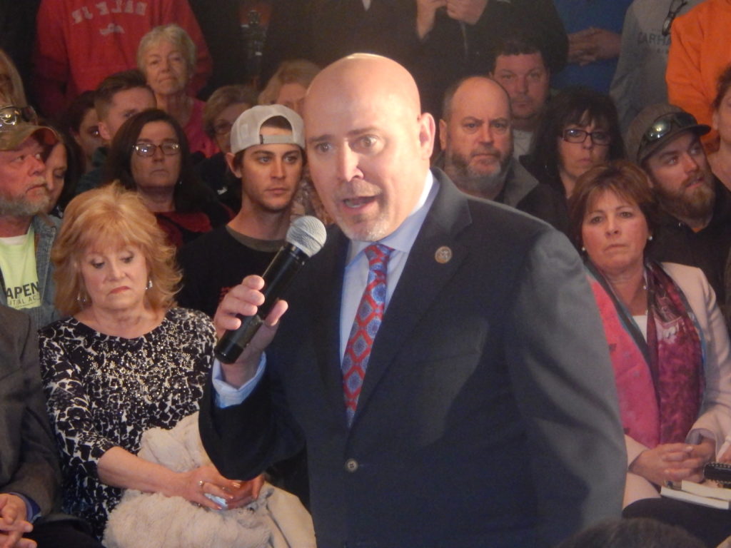 In the Trump era of unexpurgated ego, that elemental attachment for the people here has a decidedly less than anthropomorphic feel, as though the wind and sea both conspire to mock the self-adulating howls of man. Into this mood tonight at the local firehouse stepped U.S. Rep. Tom MacArthur (R-3), the soft spoken millionaire Republican congressman who looks like he could be the lead guitar player for a 1990s reanimated rock act.