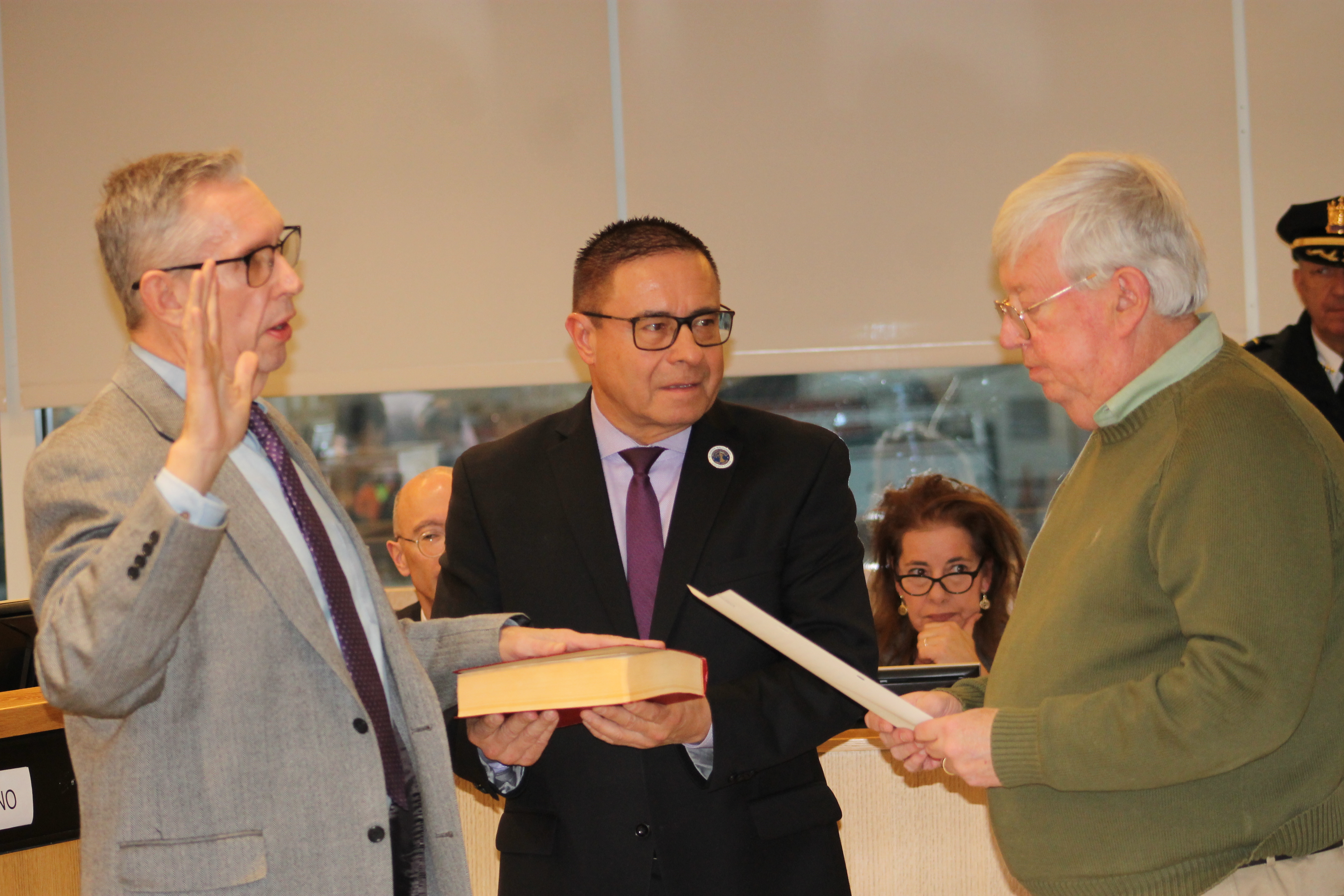 Romano, who will repeat at Pro Tempe or third in rank behind chairman Vainieri and vice chair, Bill O’Dea, insisted on having DeGise swear him in as well – even though County Clerk Junior Maldonado offered to conduct the ceremony.