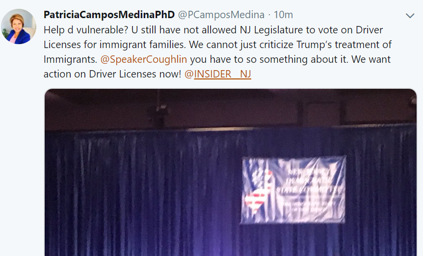 "We cannot just criticize Trump's treatment of immigrants," she wrote. "Speaker Coughlin, you have to do something about it. We neeed action on Driver's Licenses now."