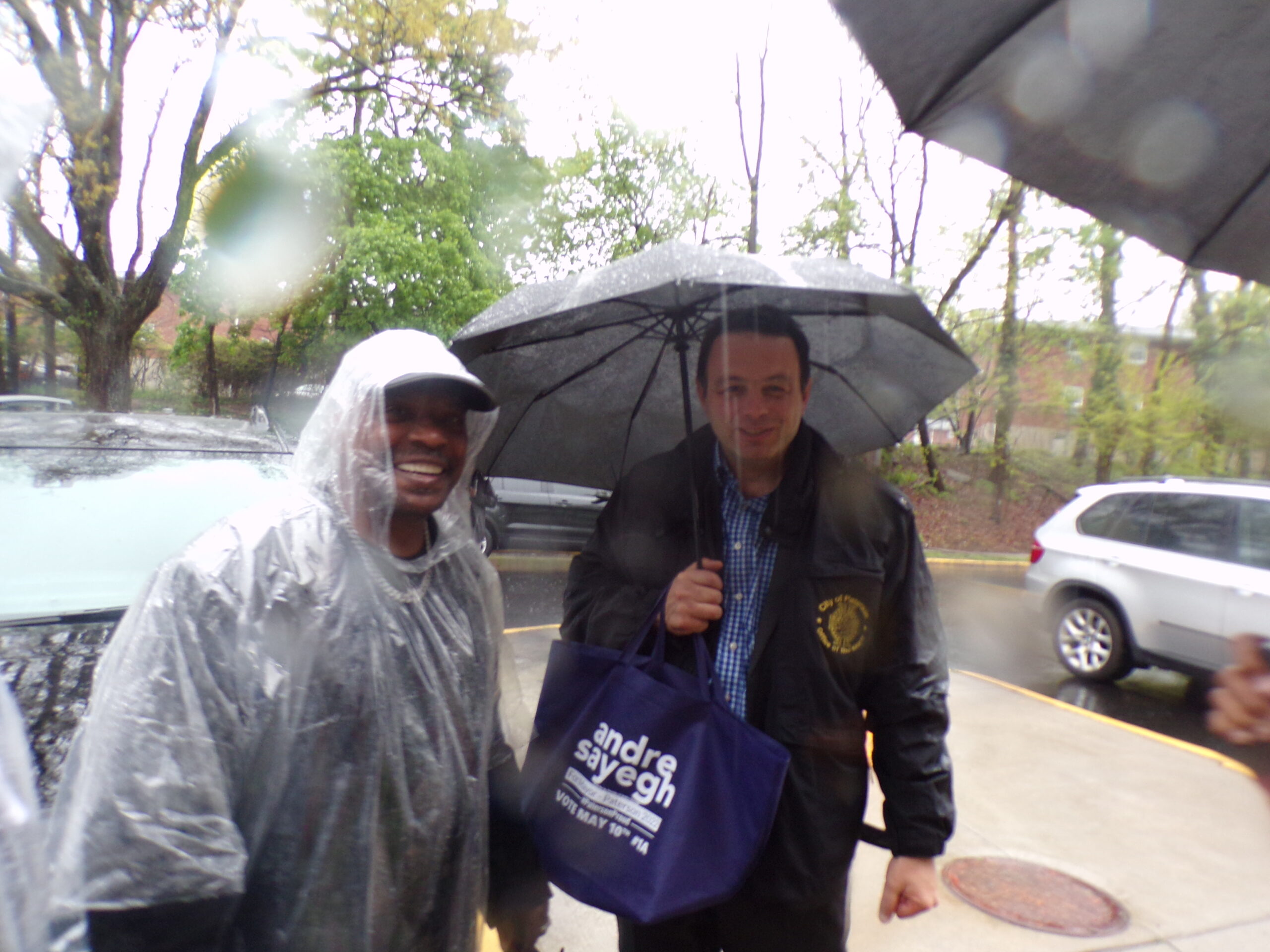 A Sayegh friend, Assemblyman Benjie Wimberly (D-35), tells him - should the mayor win a second term - that he needs to focus more on building bridges in the African American community. On Saturday, looking like a human Renoir painting under an umbrella (above) Sayegh worked the First Ward in the rain, with African American allies who said they expect him to win on Tuesday in a landslide.