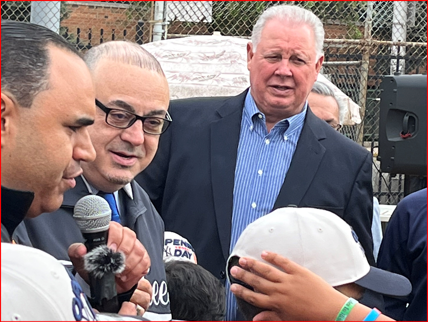 Sires and current mayor Rodriguez spoke to the assembled youngsters about the joys and community building of baseball.