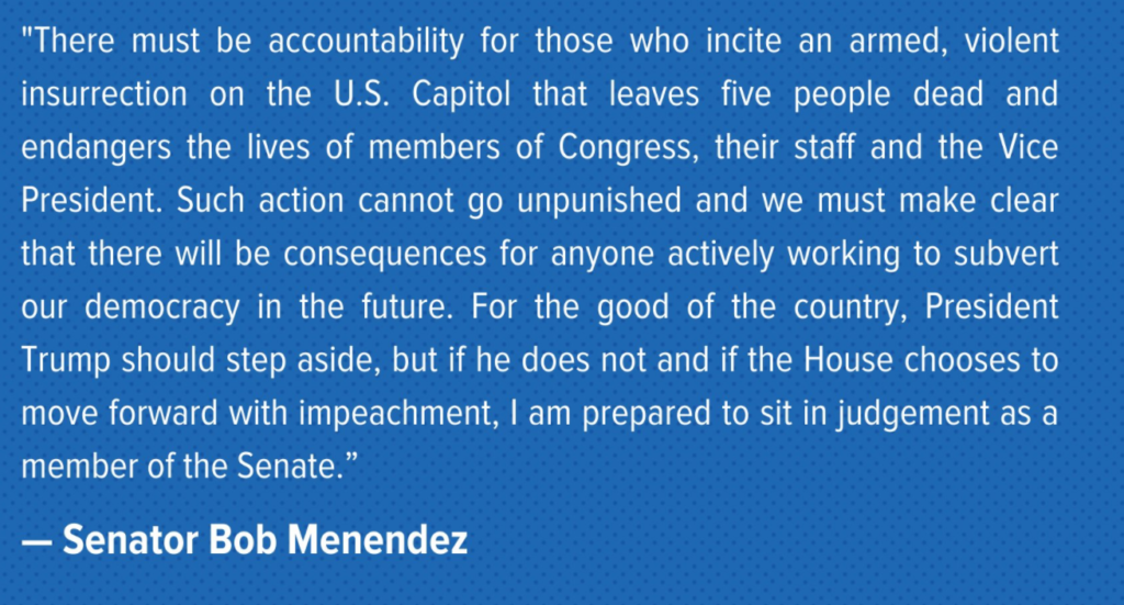 “As the chairman of the Assembly Oversight, Reform and Federal Relations Committee, as well as a former member of our armed services, I took an oath to preserve and protect our nation and its Constitution. The actions yesterday in our nation’s capital was a lawless and a seditious act by terrorists who defiled the sanctity of our halls of democracy. For too long, too many ignored the warning signs and the failure therefore must be a shared blame. Words in fact matter and lies do have consequences. I call on our citizens to pray for our nation’s healing and to respect the rule of law. Without these values, we lessen ourselves, our nation and our democratic principles.”