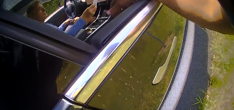 In the clip, a police officer tells Malinowski ‘you were doing 64 miles an hour, its a 45 mile an hour zone’, to which Malinowski says he was ‘going along with the traffic, I guess’. The officer responded ‘there was no one in front of you or behind you’.