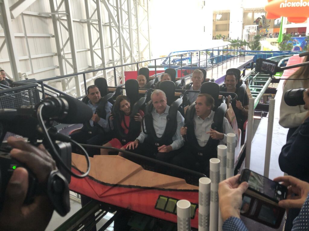 At the opening of the American Dream mega-complex today, Governor Murphy and others took a ride on the roller coaster.