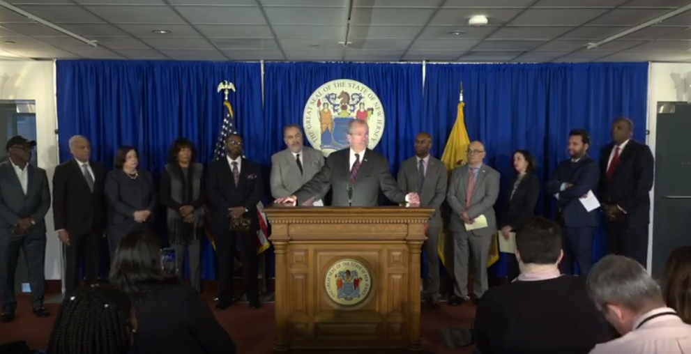 4:23PM: Praising Senate President Sweeney's efforts, Governor Murphy told him 'thanks, man'.