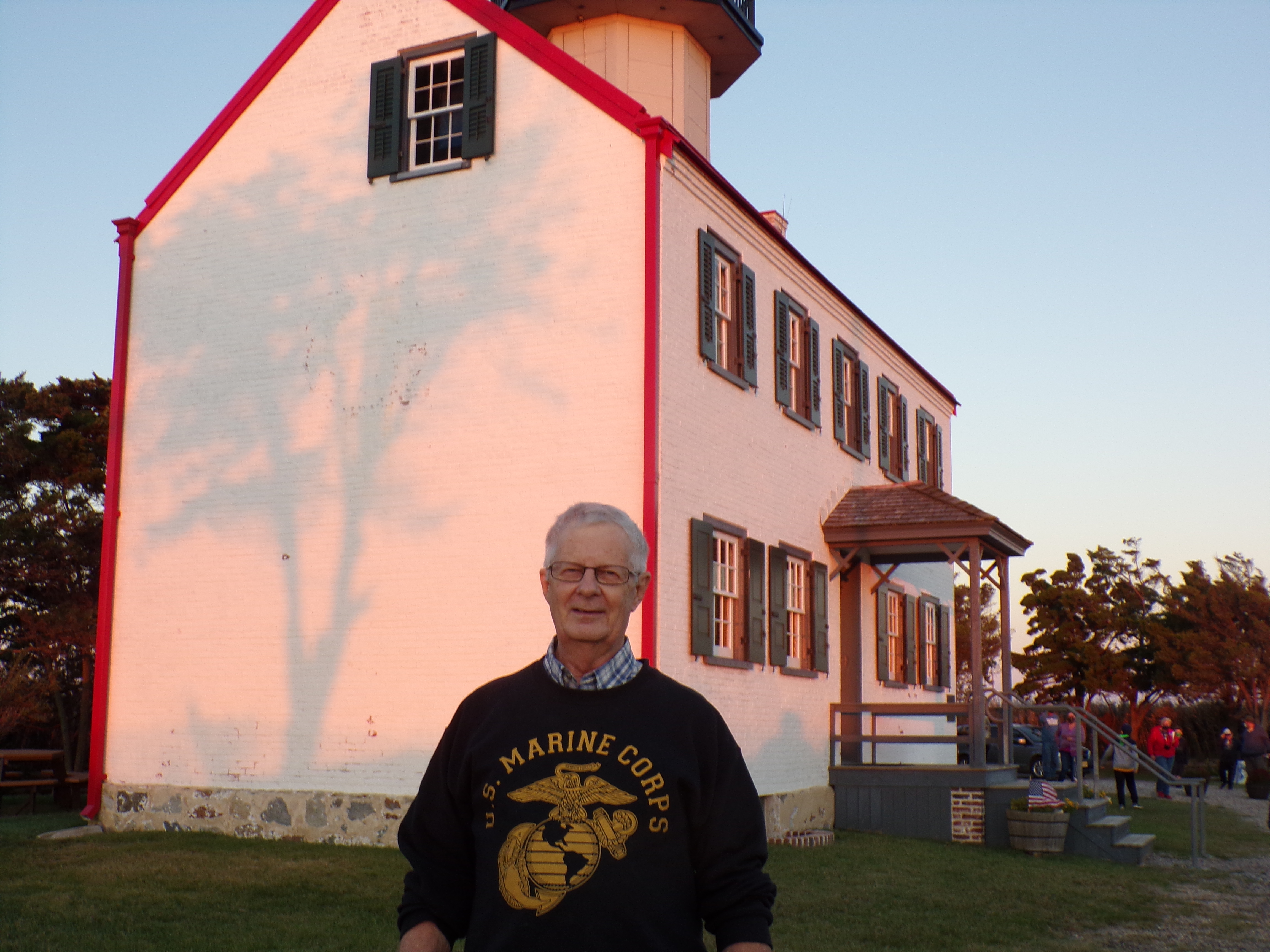 He was standing at the edge of New Jersey, eyes twinkling as the sun went down over the delta, joking with Eastpoint Lighthouse keeper Nancy Patterson about Trenton's suggested solution for how to shore up the sinking historic landmark.