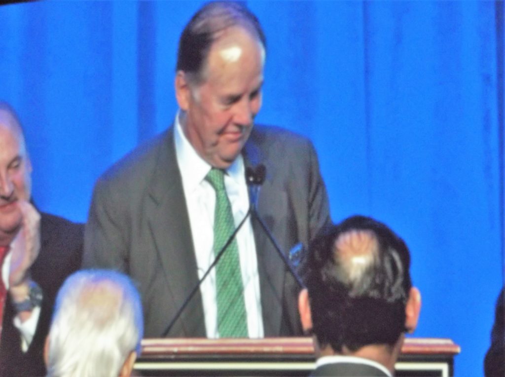 WASHINGTON, D.C. – The double impact of the late Governor Brendan Byrne being awarded the first New Jersey Chamber of Commerce’s award named in honor of Gov. Tom Kean, Sr., and the latter’s gracious acknowledgement of it left the NJ insider crowd on its feet, some of them in tears, in the ballroom of the Marriot.