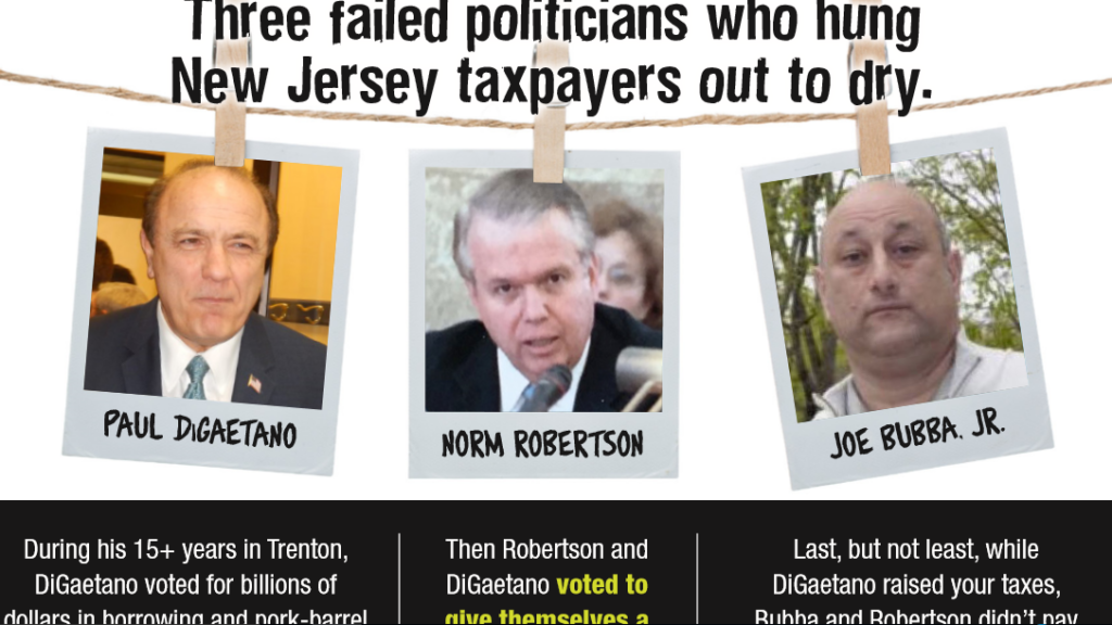 "During his 15 plus years in Trenton, DiGaetano voted for billions of dollars in borrowing and pork barrel," the Corrado mail piece states. The piece also slaps the senate candidate and running mate, former Senator Norm Robertson, for voting to give themselves raises while in the legislature.