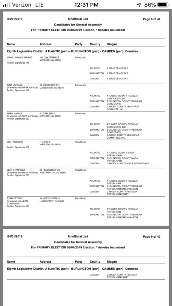 LD8 Flashpoint: Petitions Submitted (at THIS MOMENT IN TIME) in Battleground District By Insider NJ | April 1, 2019, 12:36 pm | in The Diner Booth Article Tags: LD8 Click here for the full Insider Index