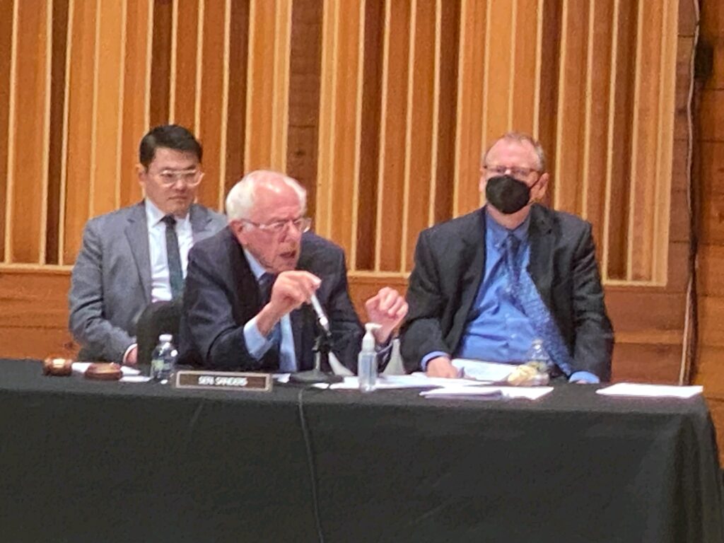 Before the hearing got underway, the Vermont senator thanked all of the nurses assembled for their pandemic service and linked the current workforce situation to a deeper crisis of scarcity that’s undermining the nation’s entire healthcare system.