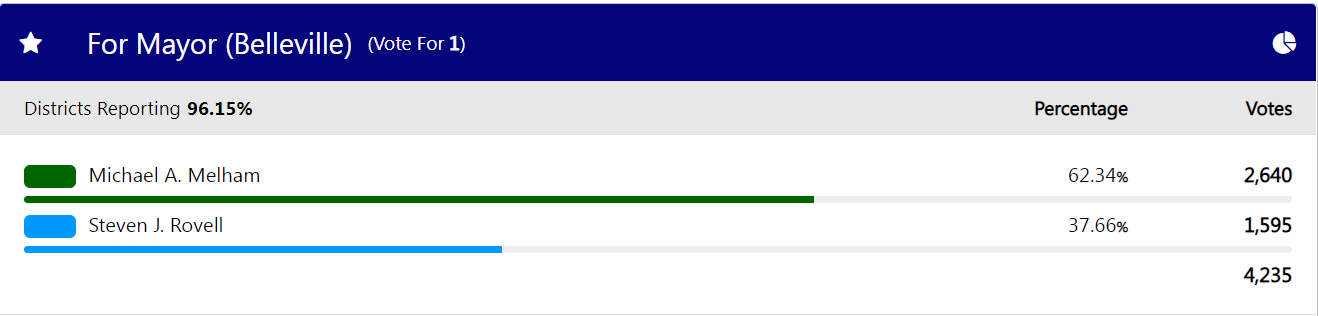 "There has never in the history of Belleville been a mayor elected and reelected with as large a percentage as I have," Melham said.