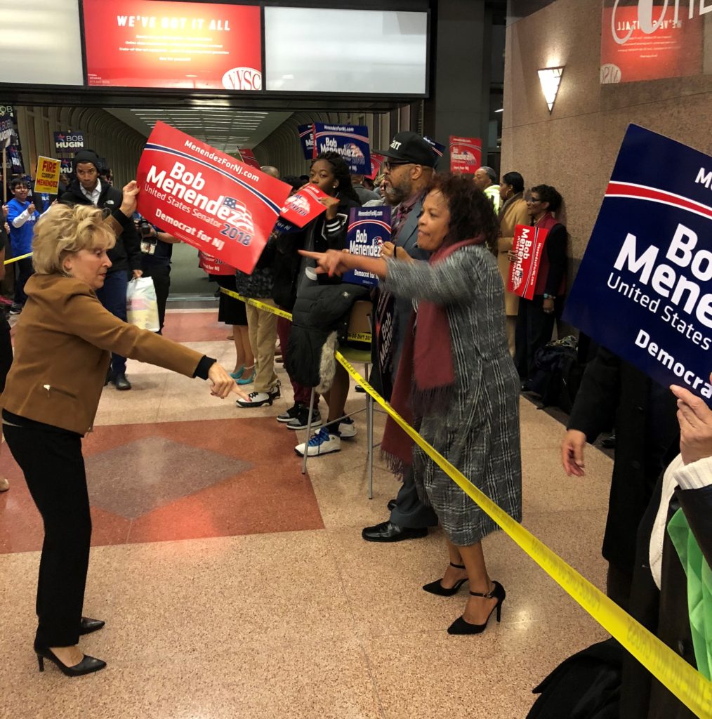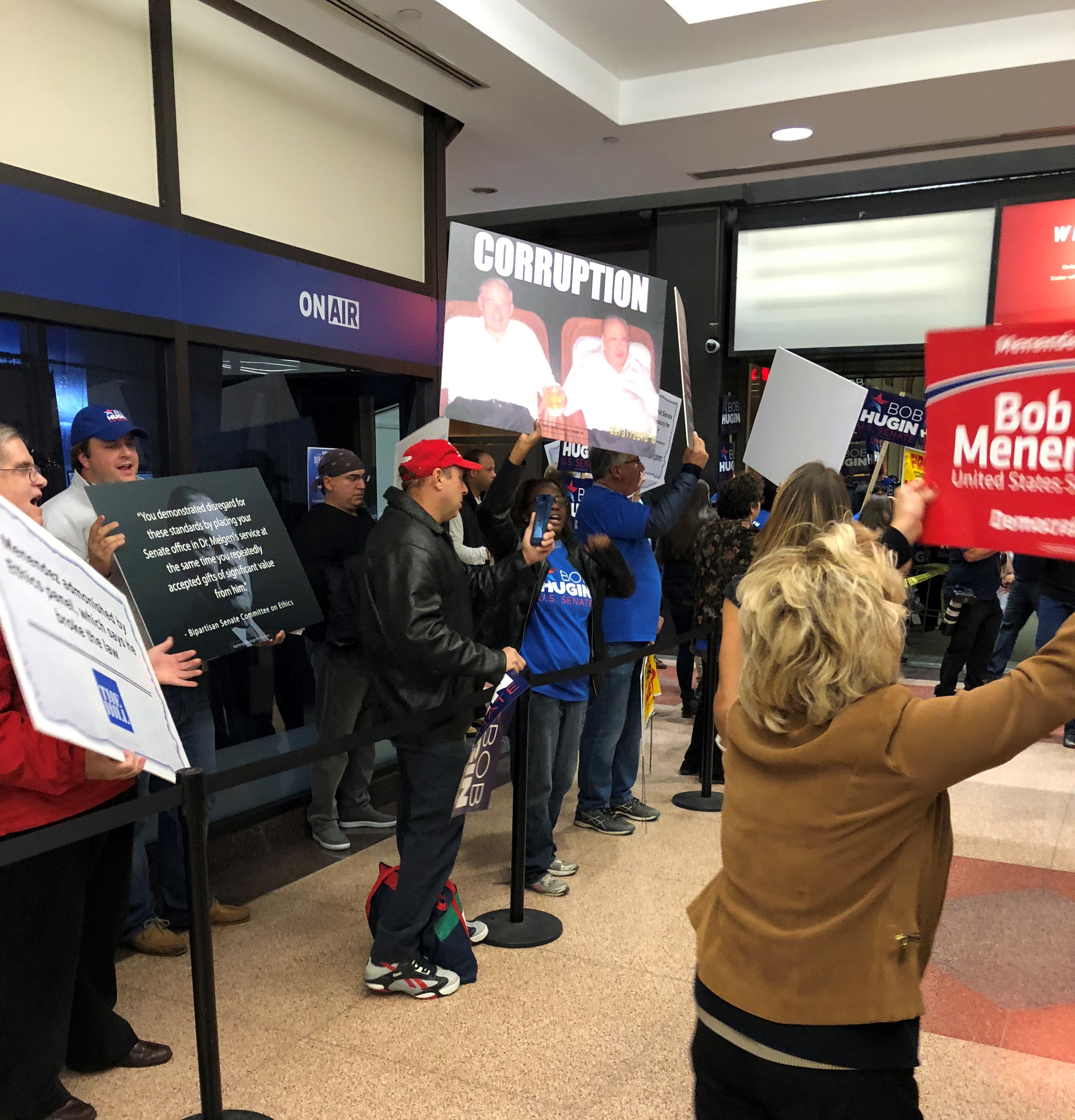 NEWARK - It’s hard to see what it really means, but dozens of supporters of both Bob Menendez and Bob Hugin are yelling at each other in the hallway outside the NJTV studio.