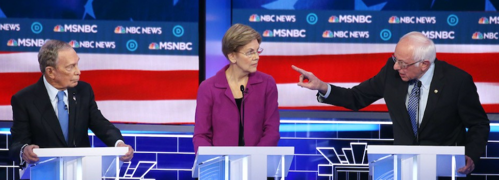 What followed next was not anyone of the candidates nor the NBC panel challenging Bloomberg about his bold face prevarication.