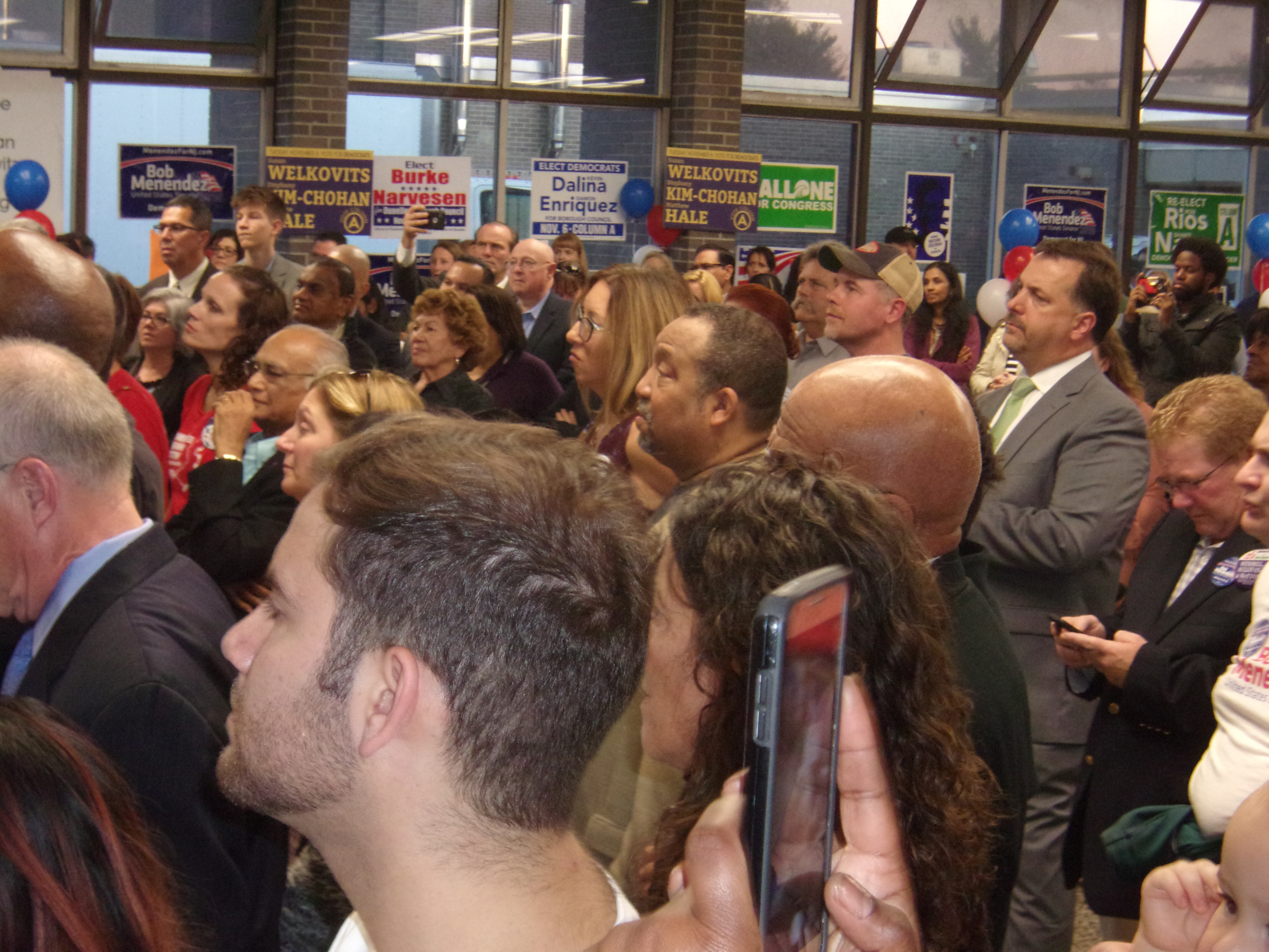 As they - U.S. Rep. Bonnie Watson Coleman, U.S. Rep. Frank Pallone, Senator Linda Greenstein, Assemblyman Joe Danielsen, Assemblywoman Nancy Pinkin, Woodbridge Mayor John McCormac, NJEA Prez Marie Blistan, Ocean County Democratic Committee Chair Wyatt Earp, countywide candidates Freeholder Ron Rios and Freeholder Shanti Narra, Middlesex County Clerk Elaine Flynn among them - waited for an appearance at the podium by Menendez, it was - rude awakening coming up - actually galvanized.