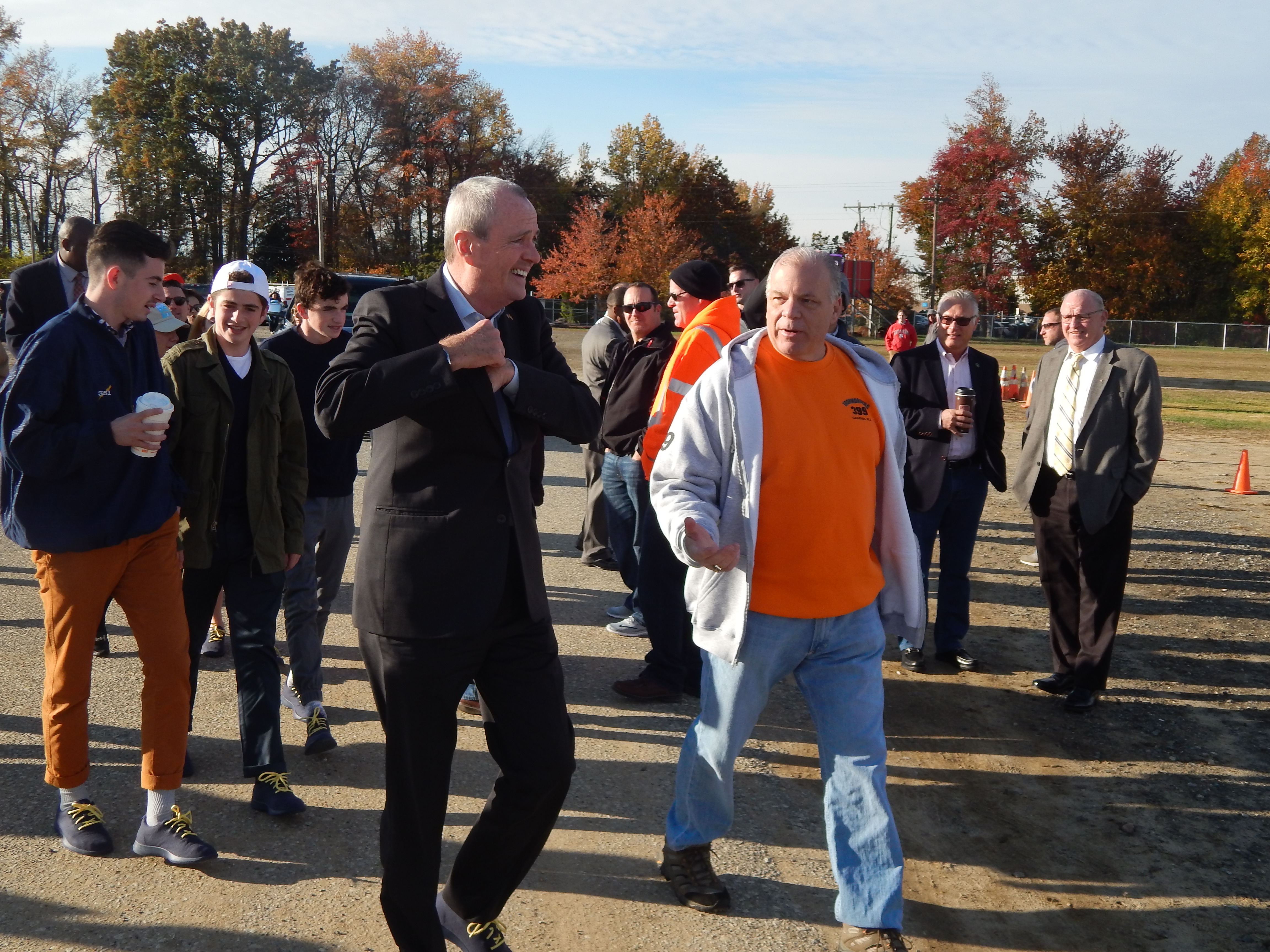 SWEDESBORO - Regional and labor divisions supposedly divided Senate President Steve Sweeney (D-3) and Democratic nominee for Governor Phil Murphy, but when the black SUV crunched over gravel amid a jammed South Jersey speedway parking lot on the morning of Election Day, a grinning Murphy appeared and practically leapt into a chest to chest embrace of Sweeney.
