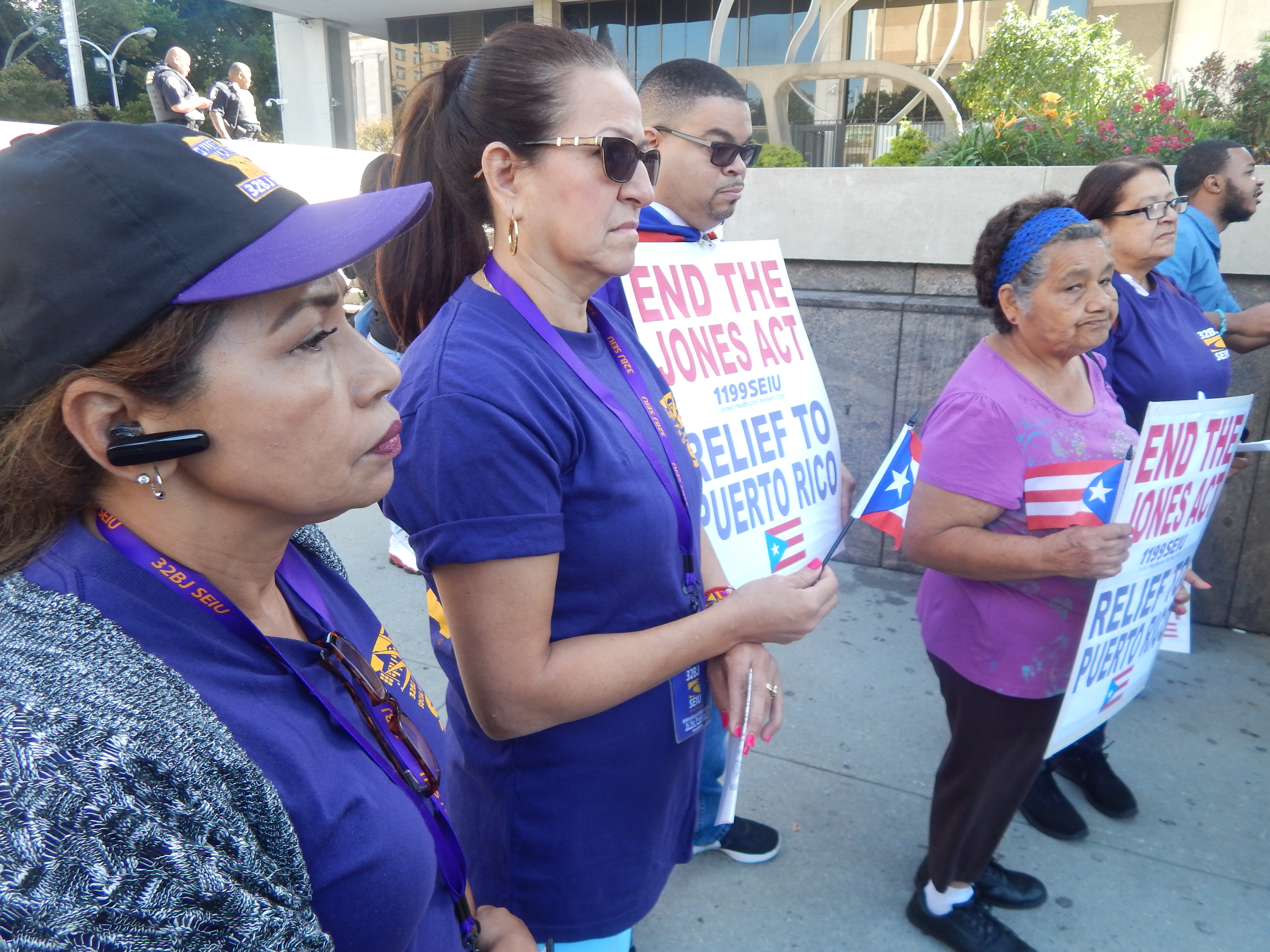 NEWARK - Puerto Ricans and their eye-level allies hit Broad Street this morning in front of the Pete Rodino Federal Building and called - with anger and irritability - on the Trump Administration to cut the nonsense and step up aid efforts to the Hurricane Maria-ravaged island. Members of SEIU 1199 and SEIU 32BJ, Perth Amboy Mayor Wilda Diaz, former Newark Mayor (and At-Large Councilman) Luis Quintana, and Newark At-Large Councilman Carlos Gonzalez all joined arms to create awareness for the ongoing post-hurricane devastation in Puerto Rico - and slapped soundly at a President they say disrespected the island.