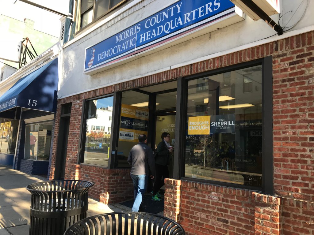 I knew from a previous visit at the start of the race that the Sherrill campaign had rented this strategic location, just a block off the Morristown Green, from the Morris County Democratic Party.
