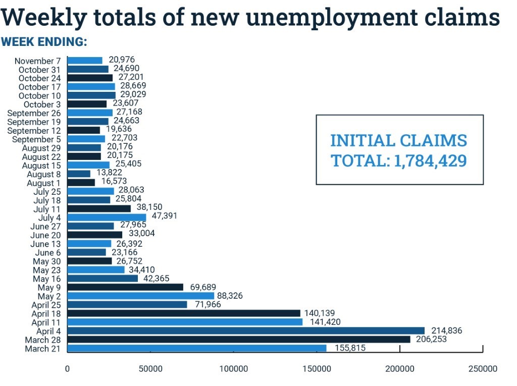 Approximately 1.78 million people have applied for unemployment since mid-March, and 1.465 million have met the monetary requirements for benefits. Of those, 96 percent have received payment. The average claimant has received more than $13,000 in benefits.