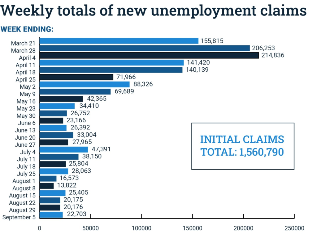 Since mid-March, 1.56 million people have applied for unemployment, with 1.36 million meeting the monetary requirements for benefits for an average of $11,439 per claimant. Of those eligible, 96 percent have received payment.