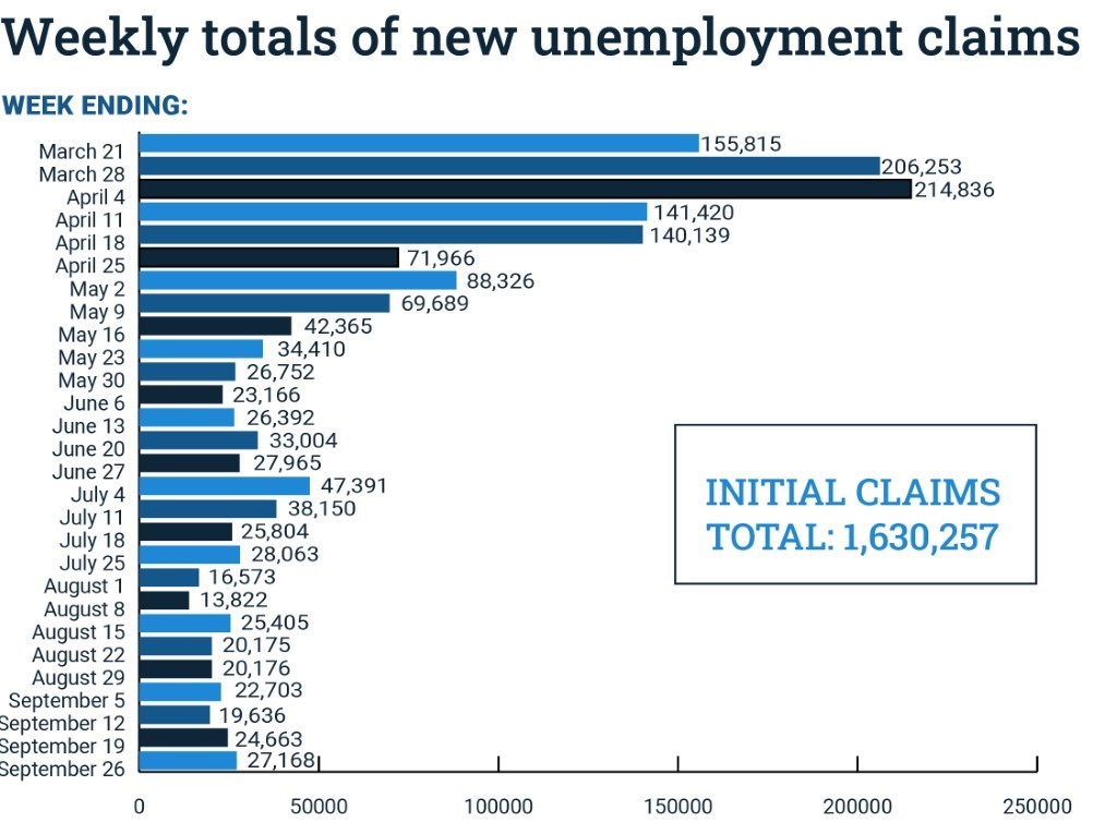 Here is a look at the number of new unemployment claims received by the department each week: